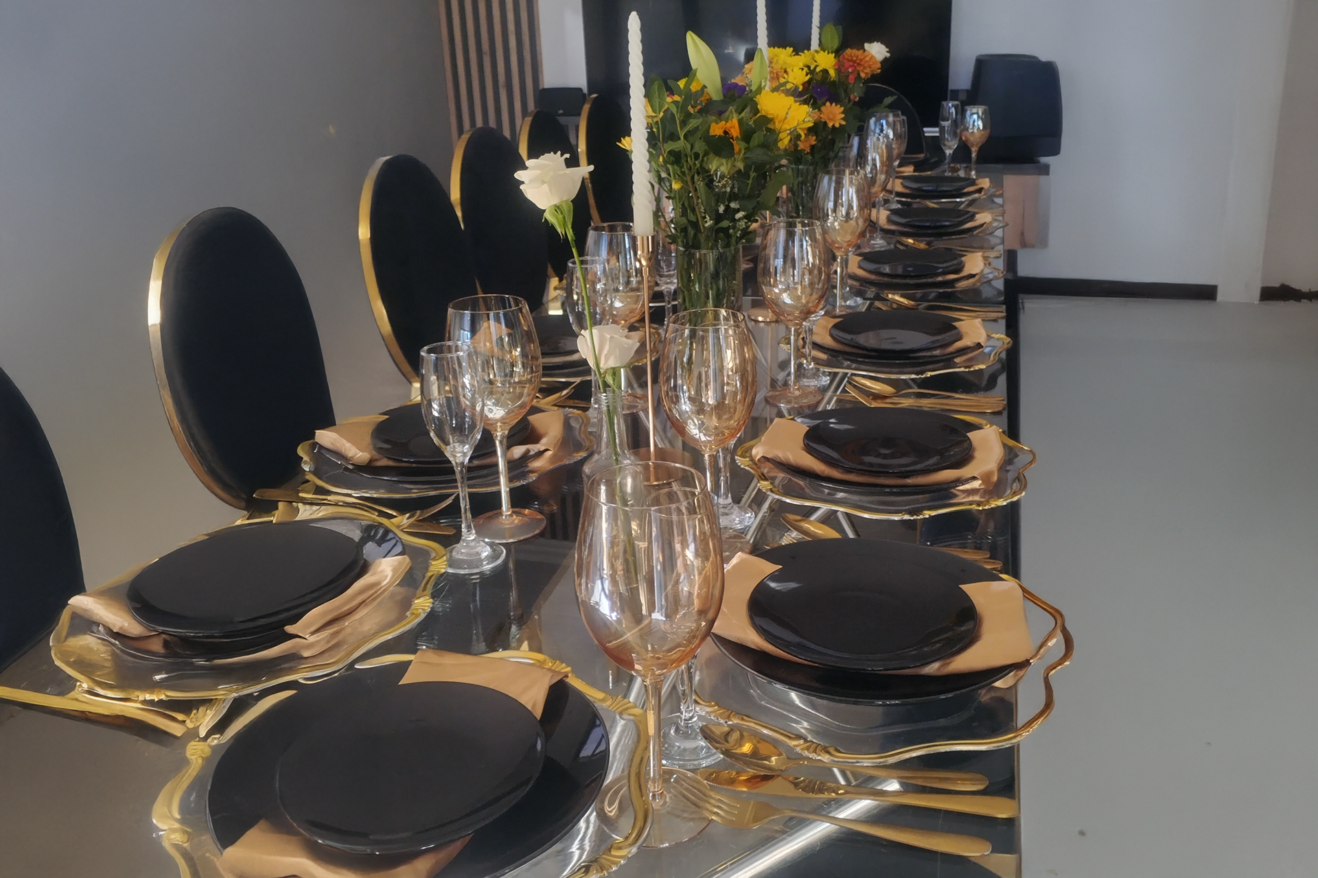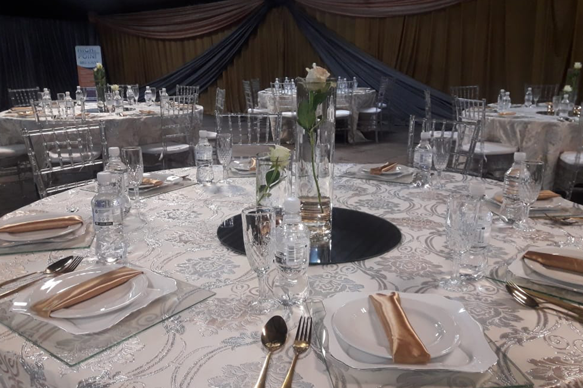 It goes without saying that everyone enjoys being in beautiful surroundings, which presents the perfect opportunity for our event décor team to transform the indoor or outdoor space that you will host your event in. We have 10-seater round tables, glass rectangular tables, couches, café tables and chairs, cocktail chairs and tables, rectangular trestle table which can be joined together to make long harvest-style tables, striking backdrops with or without balloon garlands (for those epic photo moments), and lots more. Our table décor ranges from fresh flower arrangements, stylish rose gold lanterns, glass/gold/silver candelabras and lots more.